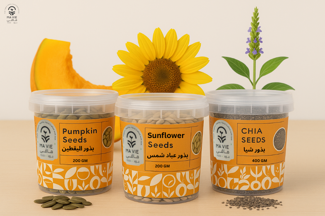 بذور اليقطين + بذور الشيا + بذور عباد الشمس