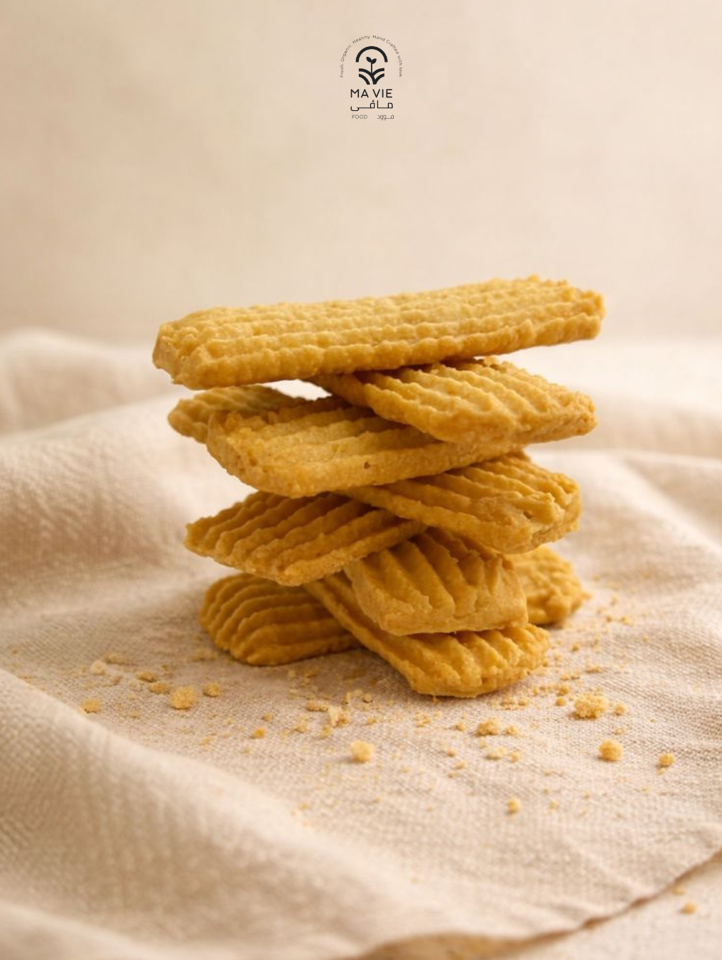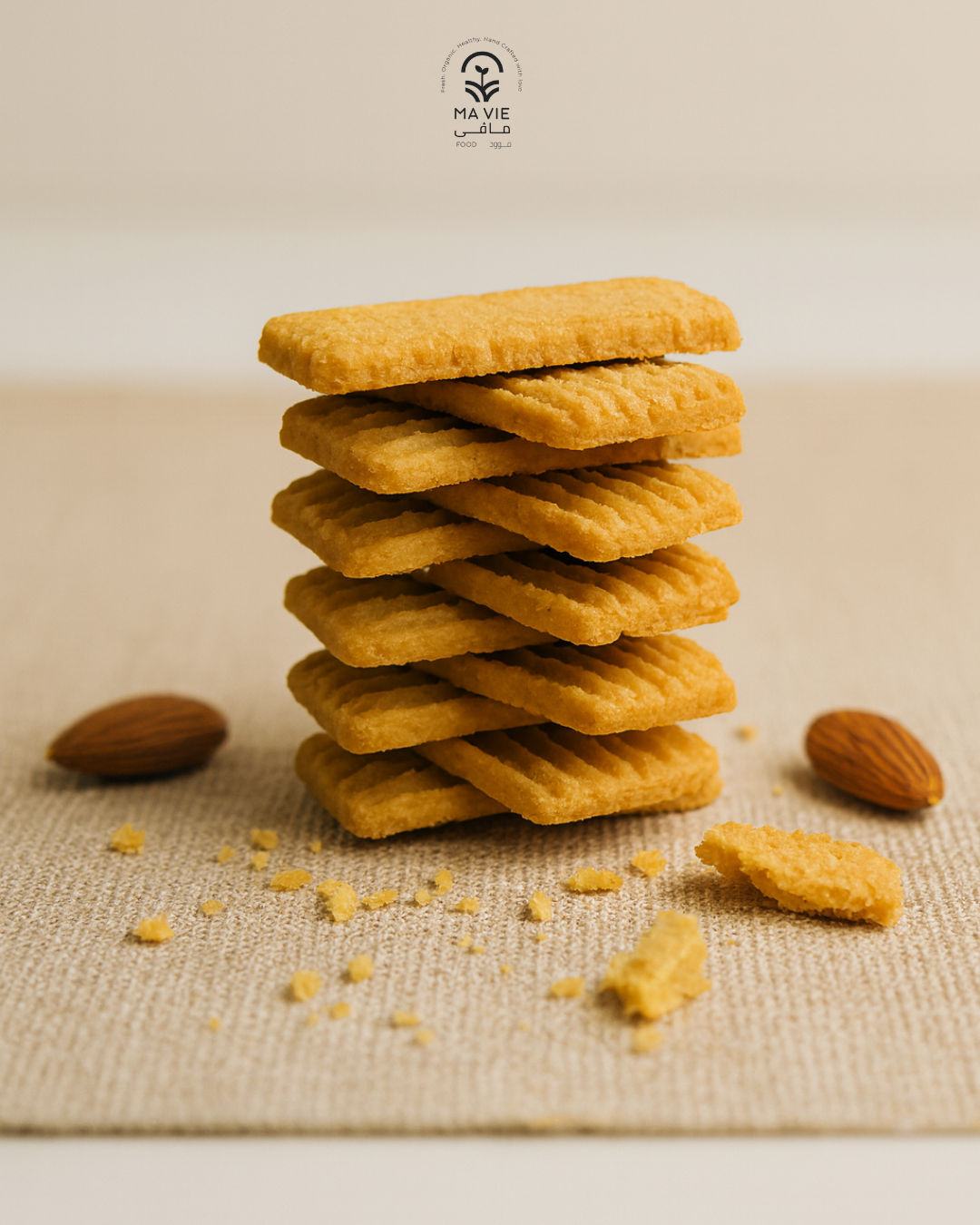 مكونات بسكوت فانيليا : دقيق لوز – دقيق جوز هند – زبدة طبيعي – زيت جوز هند – بيض – ستيفيا – بيكنج بودر