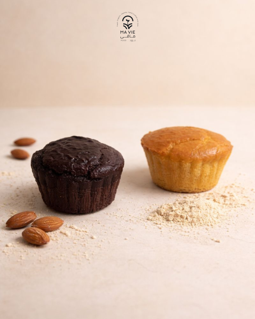 كب كيك جلوتين فري قطعة شوكولاتة + قطعة فانيليا